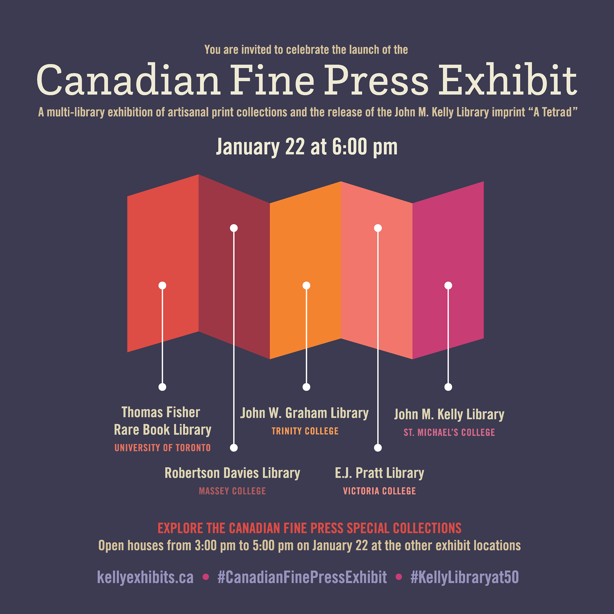 Later this month we are launching a new exhibit on The Golden Dog Press and J. Kemp Waldie as part of a collaborative, multi-library exhibit that will highlight the Canadian fine press items held by Kelly Library (St. Michael’s College), Pratt Library (Victoria College), Massey Library (Massey College and Fisher Library.