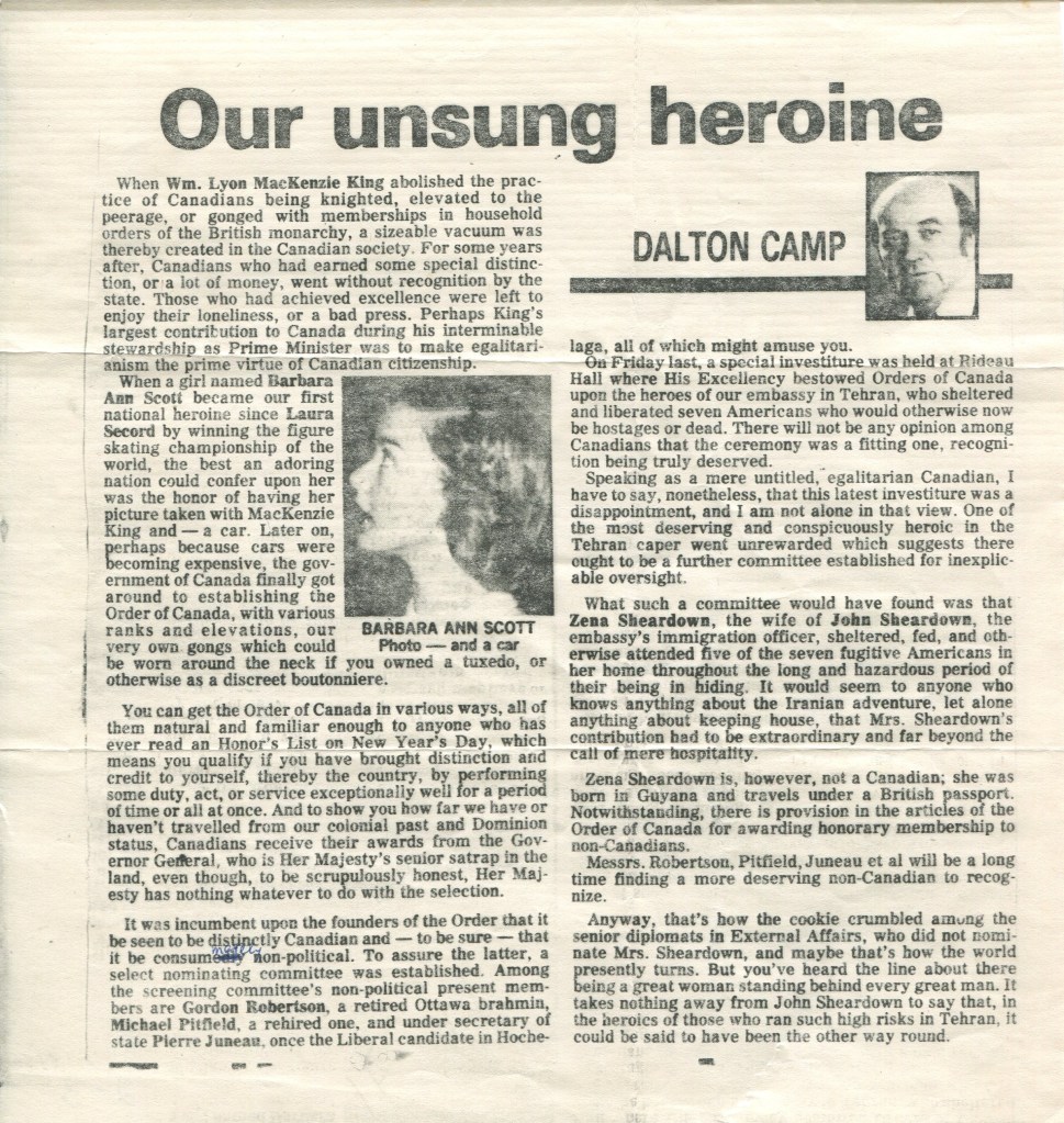 She was, along with John Sheardown, a real hero in the “Canadian caper”.