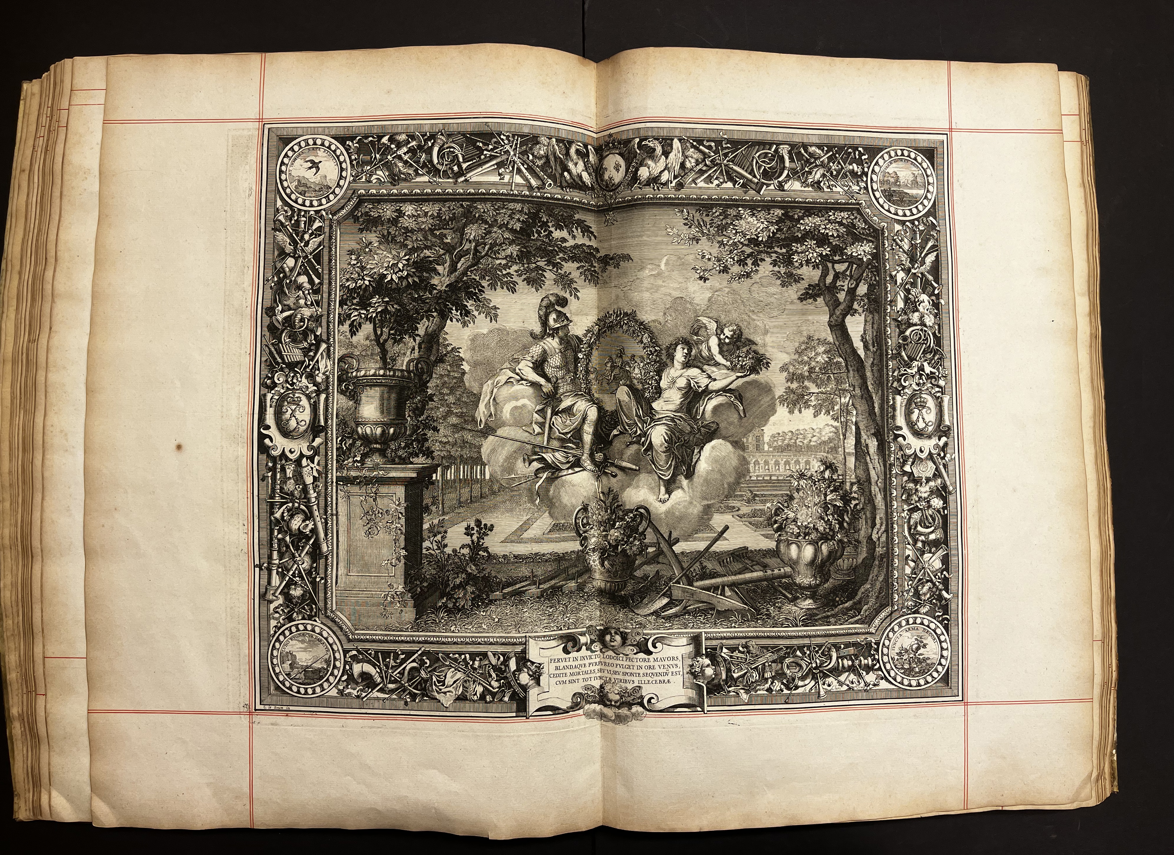 First published in France in 1670, Tapisseries du Roy is an oversize folio of engravings illustrating two series of tapestries commissioned by Louis XIV and designed by Charles Le Brun. The engravings by Sébastien LeClerc show the rich symbolism and details of the tapestries that were based on mythological allegories on the themes of the four elements and the seasons. To get us all inspired by the prospect of spring as this winter drags on, we’ve selected some images from Le Printemps section of the text to show here.