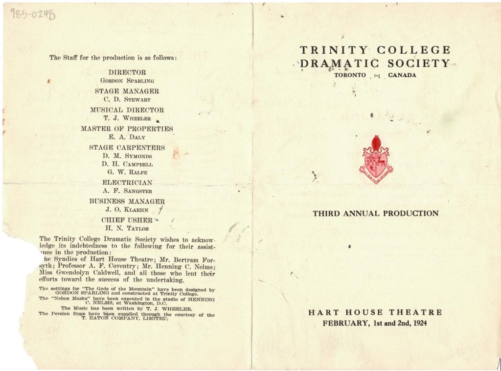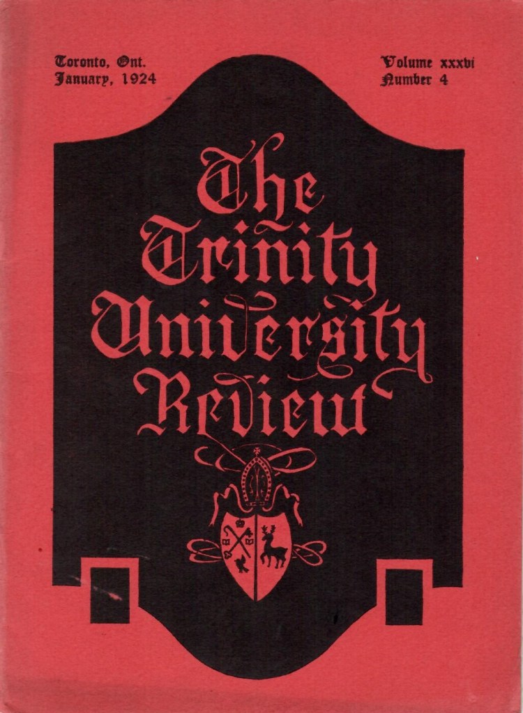 Turning the page on a new year often prompts us to look forward, but sometimes it’s fun to look back. In January 1924 Trinity College was entering its last year at the Queen Street West location. Women were entering the College in record numbers, athletics were a big part of College life, The Trinity College Dramatic Society (TCDS) was in full swing, and The Trinity University Review contained articles on the future of democracy, politics and the student, and the freedom of the press. The more things change, the more things stay the same!