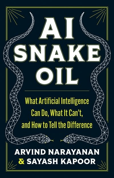 Spotlight: AI Snake Oil: What Artificial Intelligence Can Do, What It Can’t, and How to Tell the Difference, by Narayanan, Arvind